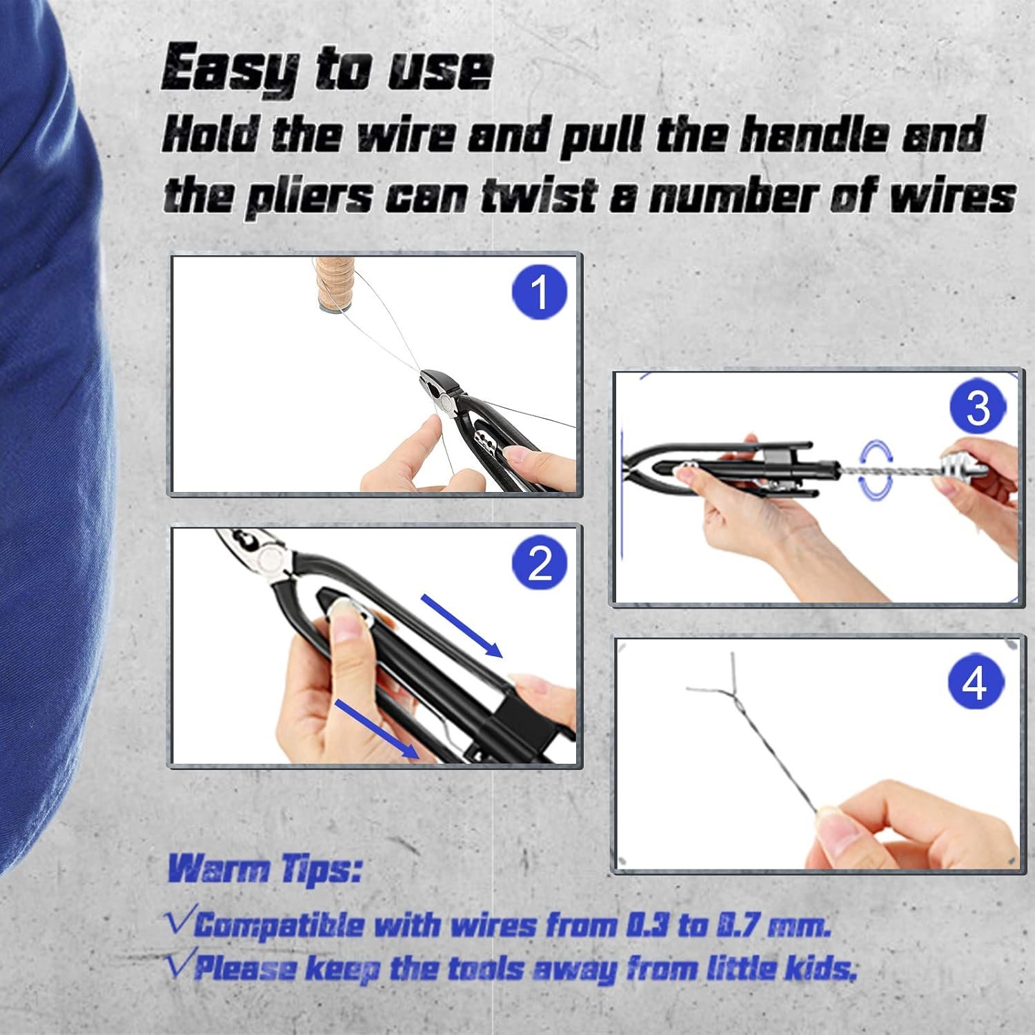 Die tang kan drade (sluitdraad) vinnig en veilig op die verlangde plek vasdraai, wat jou werktyd bespaar.