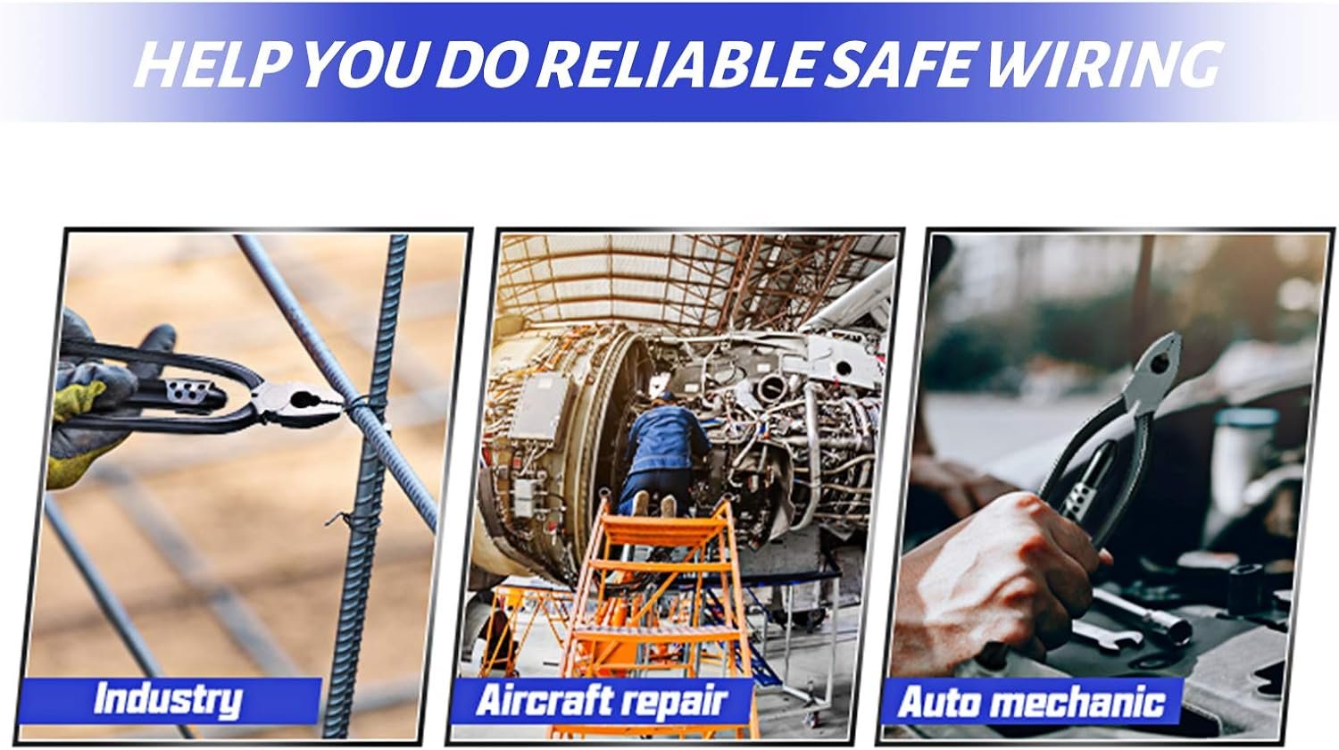 Hierdie veiligheidsdraadtang is in werklikheid drie gereedskapstukke in een: ‘n draadsnyer, ‘n draadtwister (om te vleg), en ‘n paar gewone tange.